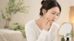 - 鎖骨・脇の下を優しくさする:リンパは鎖骨下静脈に合流します。鎖骨のくぼみを指3本で優しく円を描くようにさすること(1〜2分)で、リンパの出口を開く効果があります。朝の洗顔後や入浴時に習慣にするのがおすすめです。